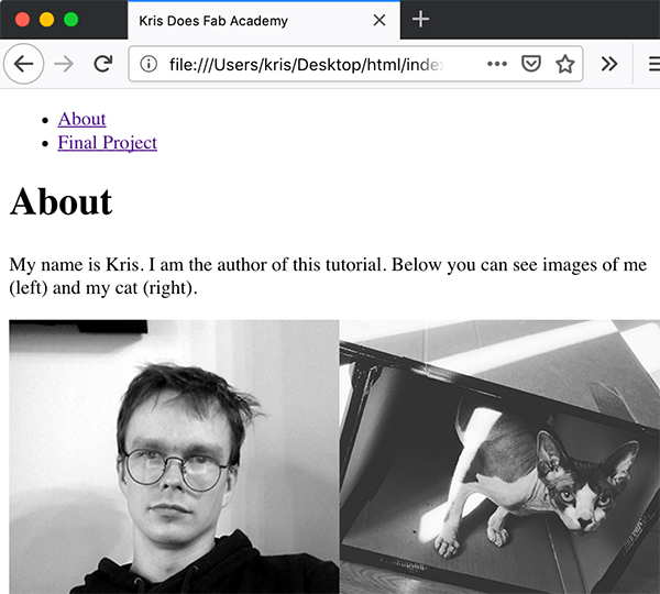 Finally in the <body> part we can add our visible content. Let it be our About page.