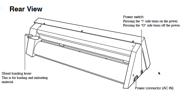 On the left side of the vinyl cutter is the power button.