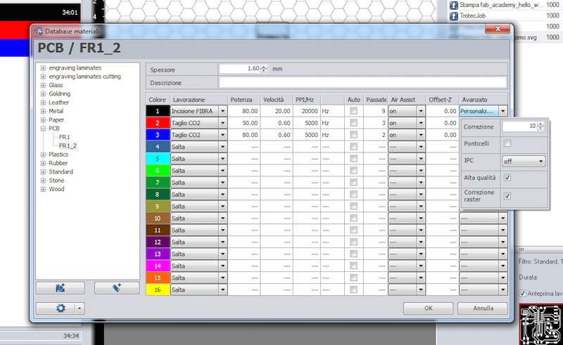 Daniele is also experimenting with FR4 boards: same settings, only more cut passes in order to be sure the board will be cut. Even the documentation from Trotec says it's possible. See one example here: